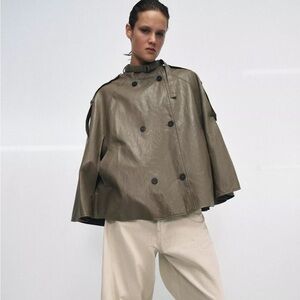 ZARA ZW COLLECTION FAUX LEATHER CAPE JACKET