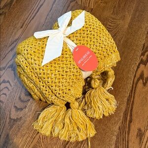 Opalhouse Mustard Yellow Chunky Crochet Throw with Tassels