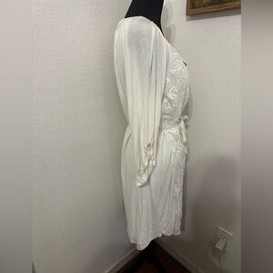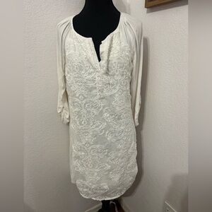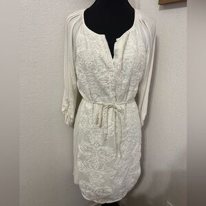 Anthropologie Tiny Embroidered Belted Ivory Shirt Dress - size Medium