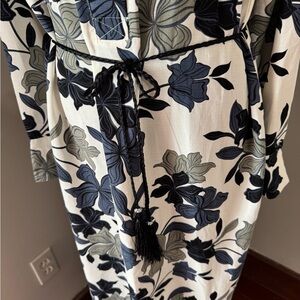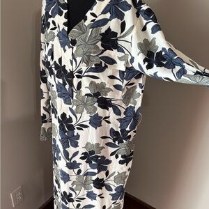 This elegant long sleeve dress features a beautiful floral design in black and gray. Perfect for any occasion, it offers both style and comfort.