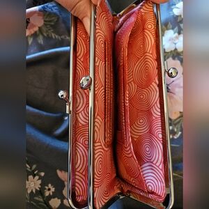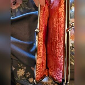 Stylish wine red leather clutch with a classic kiss-lock frame. Soft textured leather for a refined look. Secure top clasp and zippered pocket for organization. Perfect for evening events and everyday use. Color: wine red
