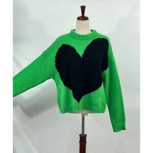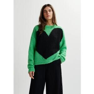 ESSENTIEL ANTWERP Sz XS Green Heart Intarsia Pullover Sweater NWT