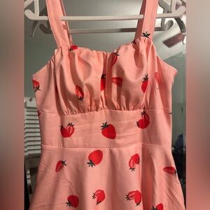 So charming and adorable pink dress with a playful strawberry print. Perfect for casual outings and summer days while they’re still here!