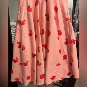 NWT Belle Poque Strawberry Print Pink Swing Midi A Line Dress