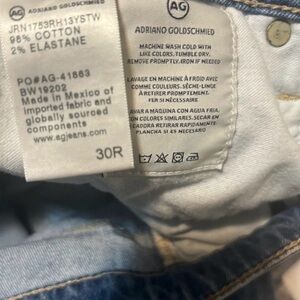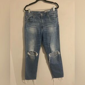 AG Adriano Goldschmied Light Blue High-Rise Cropped Jeans with Knee Rips