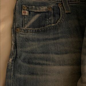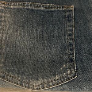 EUC❗️High-rise cropped jeans in light blue wash. Subtle distressing on pockets and side seams and ripped knees. Slim through the hips with a straight, ankle-length leg. Classic five-pocket style with clean back detailing. Easy, everyday denim with a modern cropped finish.