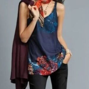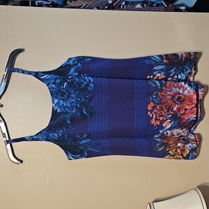 Cabi Artist blue multi colored floral layered cami. Comfortable and versatile vibrant top. Gently worn twice nice condition. No rips holes or stains.