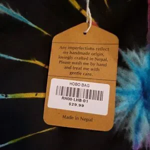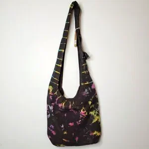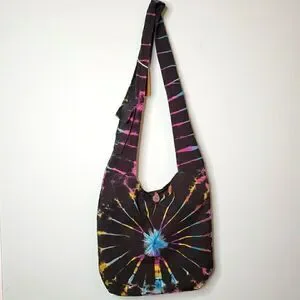 Tie Dye Crossbody Hobo Bag Rainbow Spiral Fabric Festival Purse Handmade Nepal