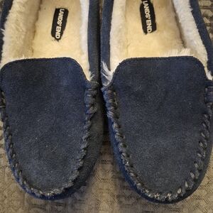 Lands' End Kids Navy Suede Loafers - Sz 4, Cozy, Durable, Unisex
