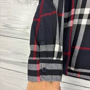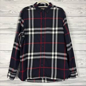 Burberry Brit Navy Blue Nova Check Long Sleeve Button Down Shirt Size Large. In very good preowned condition.