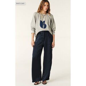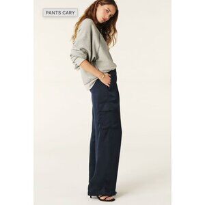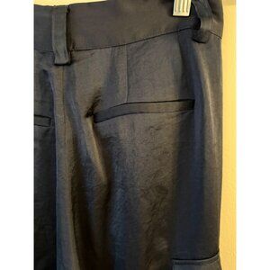 Ba&sh Cary Cargo Style Wide Leg Pants Deep Navy Blue Satin Sz 34/XS