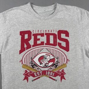 Vintage Cincinnati Reds MLB Graphic Cut Tag T-Shirt Mens Gray 1881 Tee L