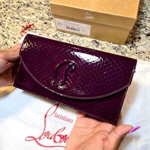 Elegant in town or for the evening, the Loubi54 clutch can be carried by hand or over the shoulder. The practical interior and CL monogram adornment of this Snake Embossed Merlot patent leather model demonstrate the expertise of Maison Christian Louboutin.