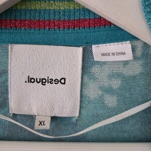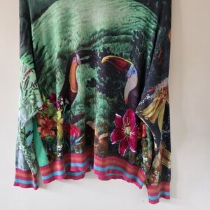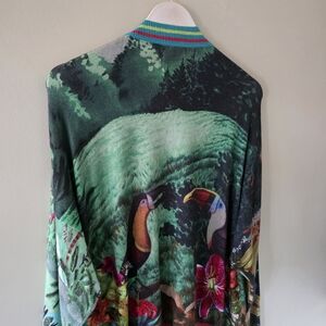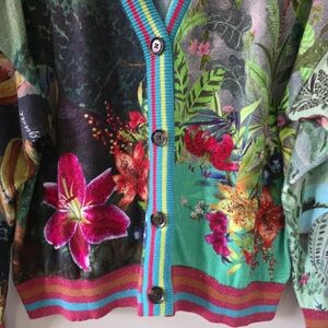 Desigual XL Eclectic Bohemian Art to Wear Tropical Floral Colorful Metallic Cardigan