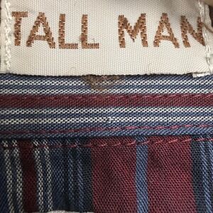 Classic western pearl snap shirt from Ely Cattleman features a bold vertical stripe pattern in burgundy, blue, and white. Designed for the tall man, this long-sleeve shirt includes traditional western yokes on the front and back, two chest pockets with snap closures, and a full snap-front placket. The lightweight fabric and relaxed fit make it a versatile choice for casual wear or ranch work.