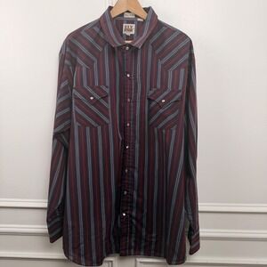Ely Cattleman Mens 3XLT Western Pearl Snap Shirt Burgundy Blue Striped Tall Man