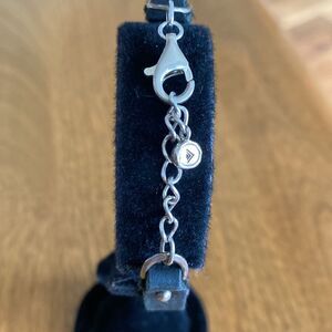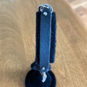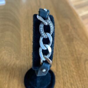 In very good condition. Leather, sterling silver and Swarovski crystals. Measures 9” long and 1/3” wide.