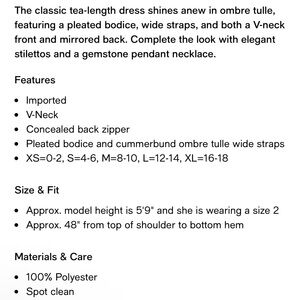 Purple and pink ombré tea length dress with voluminous tulle skirt. Back zip closure. Built-in cups in top.