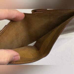 The brown leather enhances its classic and timeless appeal. Inside, the wallet is designed for practicality with compartments for cards, bills, and other essentials.