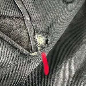 Slight tear above the inside pocket