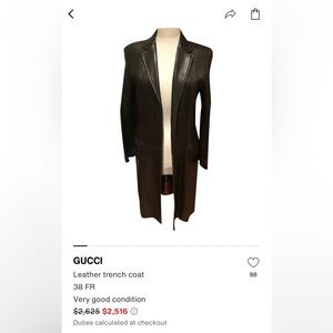 Gucci leather trench coat/coat, elegant model, good condition