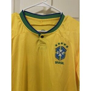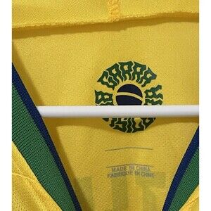 This product is a Brazil Football Soccer Jersey shirt in men's size M. The shirt features the traditional yellow color of the Brazil national soccer team and bears the team's logo. Made with high-quality materials, this jersey is perfect for fans looking to show their support for the Brazilian national team while out on the field or in the stands. Whether you're playing a game or just cheering from the sidelines, this Brazil jersey is a must-have for any soccer enthusiast.