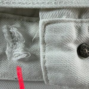 CONDITION: Good, 1/2 inch tear by bottom button