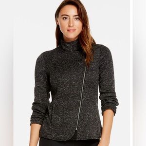 Fabletics KnitFit Moto Jacket Gray Asymmetrical zip athletic Athleisure Size M