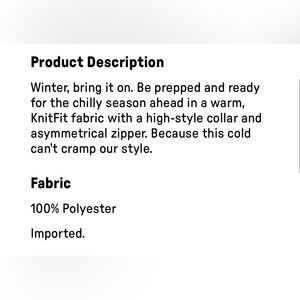 • Zip accents at sleeves