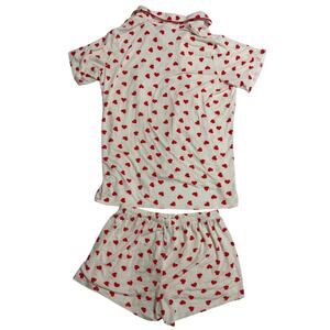 Skims Sleep Short Set Red Heart Button Front Top Pull on Short Small