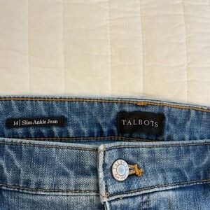 Talbots Size 14 Ankle Slim Leg Jeans . Worn nice. Adorable darker wash stripe on sides for a slimming look. Excellent condition.
