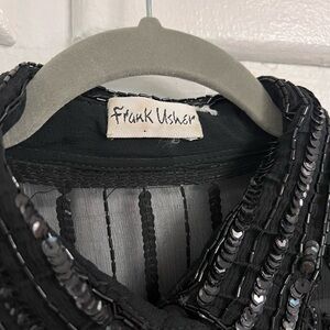 Frank Usher Design Black Beaded Sheer Button-Front Blouse