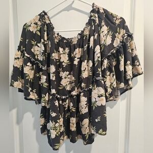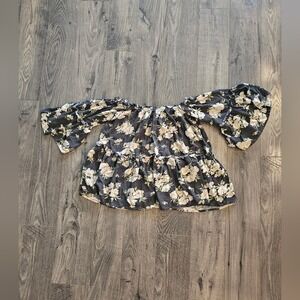 Embrace elegance with this floral off-shoulder top. Perfect for any occasion, this black and cream top adds a touch of sophistication to your wardrobe. I have other similar looks like this and a variety of other items with more added every day. Please ❤️ and send an offer. Thank you for reading.