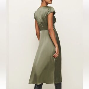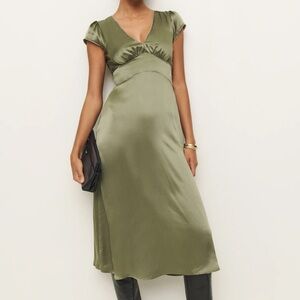 Reformation Cassie Silk Midi Dress in Aloe Vera Green
