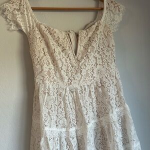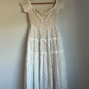Charming lace dress with cap sleeves. Great for weddings. Features intricate lace pattern. New, no tags