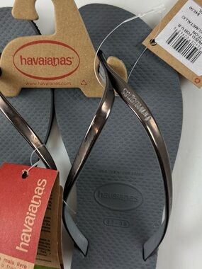 Havaianas Sandals Gray Steel Metallic Graphite Womens 7/8W Flip Flops Thong NWT