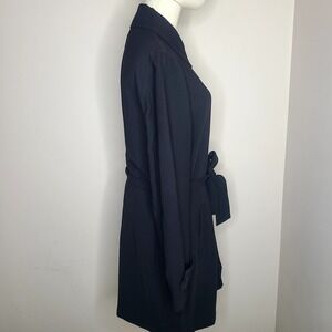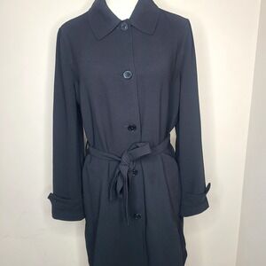Lauren Ralph Lauren Drape Lapel Crepe Belted Coat Black Women's Size 8