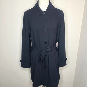 LAUREN Ralph Lauren Drape Lapel Crepe Belted Coat Black Women's Size 8