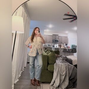 FP We The Free Emma Embroidered Button Front Floral Top in Tofu Combo Sz Large