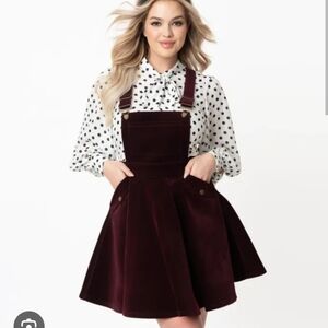 Unique Vintage 1960s Black Corduroy Brionne Pinafore Skirt 1X 16