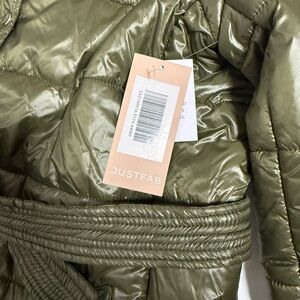 NWT JustFab Olive Green Maxi Puffer Coat | Hooded & Belted | Size XXL