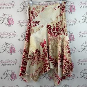 A flowing satin skirt with an asymmetrical hem and romantic floral print. Lightweight and drapey for easy movement. Features cream background with rich red floral accents. Versatile for daytime or dressier occasions. M. πŸŽ€β˜οΈπŸ’Žβœ¨πŸ©·πŸ’œπŸ©΅ πŸ’Ž Get ready for endless compliments! πŸ’Ž Love the item but not the price? Offers are always welcome! πŸ’Œ We are dedicated to ensuring this stunning item becomes yours πŸ₯°βœ… πŸŽ€ Bundle & Save πŸŽ€ Buy 2+ items to unlock exclusive discounts + enjoy significant savings on shipping! πŸŽ‰ The more you shop, the more you save! ⭐️ Thousands of Reviews ✨ Fast shipping πŸͺ„ Standard Dispatch Same Day πŸŽπŸ’Œ Unforgettable Luxury Packaging πŸ’Ž Items Are Cross Posted πŸ’‹πŸŒŽ 🧼 ALL pre-owned items are professionally cleaned 🧼 Shop with confidence & experience true luxury shopping πŸ›οΈπŸŽŠ We add new rare items every single day! πŸ’ Discover our timeless pieces that enhance your natural beauty & boost your confidence, helping you feel irresistibly attractive & empowered every day. πŸͺ½πŸ§šπŸΌβ€β™‚️ Y2K, VINTAGE, VTG, DEADSTOCK, 2000s, EARLY2000s, GLAM, LUXURY, LUXE, RHINESTONE, BLING, DIAMONDS, FAIRY, RETRO, PREPPY, BALLETCORE, KIDCORE, VICTORIAN, LACE, FLORAL, GYM, JEWELS, CRYSTALS, CASUAL, COMFY, STREETWEAR, MODERN, MIDCENTURY, LOUNGE, RAVE, SEXY, CUTE, CLASSY, COSTUME, COSPLAY, BEACH, COTTAGECORE, CABINCORE, GRANDMACORE, PINUPGIRL, OLDSCHOOL, BOHEMIAN, WESTERN, REGENCY, RENAISSANCE, RARE, HTF, FASHION ITEMS: that turn heads. This is more than shopping, it’s a glow-up. πŸ’–