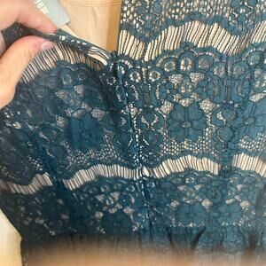 Teal floral lace with beige lining