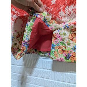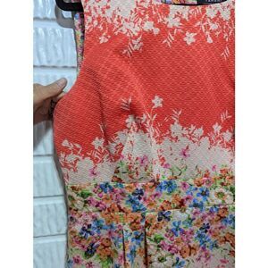 Tahari Women's Orange Floral Fitted Waist Sleeveless Boat Neck Shift Dress Size 12