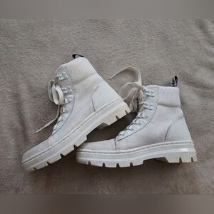 Doc Marten White Canvas Combs chelsea Moto combats boots. Wore one time only. Womens size 7.