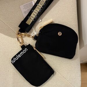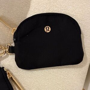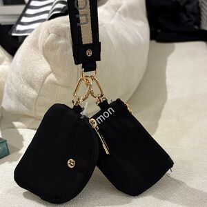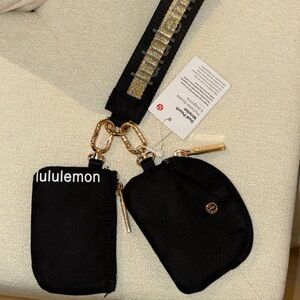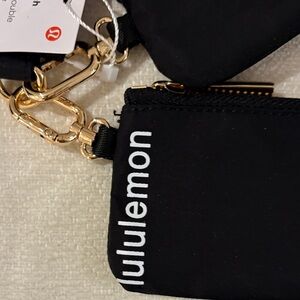 Chic and functional key holder set by lululemon athletica. Features sleek black pouches with gold accents. Ideal for everyday use.