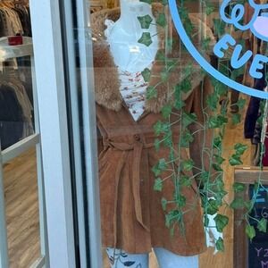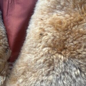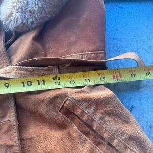 Vintage 70s Brown Suede Leather Shearling Fur Collar Coat Boho Grunge