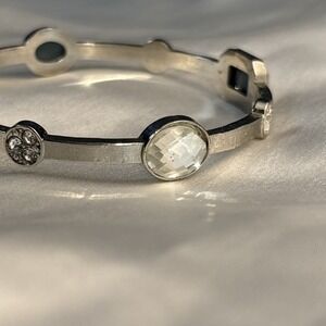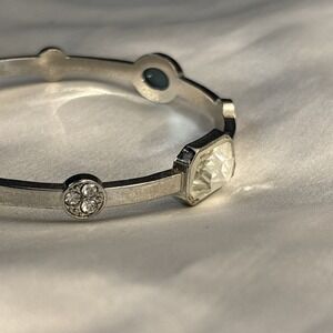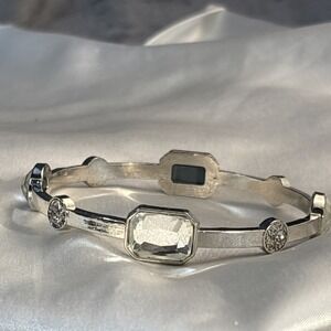 Very Sparkly Bangle Silver Tone Clear Stone Bracelet Bling Glam Stackable Estate