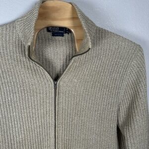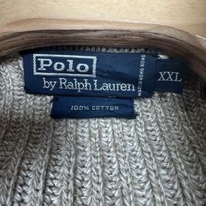 Polo Ralph Lauren Sweater Mens XXL Beige Ribbed Full Zip Mock Neck Cotton Knit