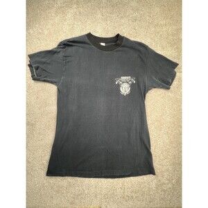 This vintage 1988 Cherokee Rally Bobs Precision Cycle motorcycle art shirt in size large is a must-have for any motorcycle enthusiast. The black shirt features a unique design showcasing a motorcycle theme, making it a stylish and comfortable option for men looking to show off their love for bikes. The shirt is a regular fit and is perfect for casual wear, adding a touch of vintage charm to any outfit.
